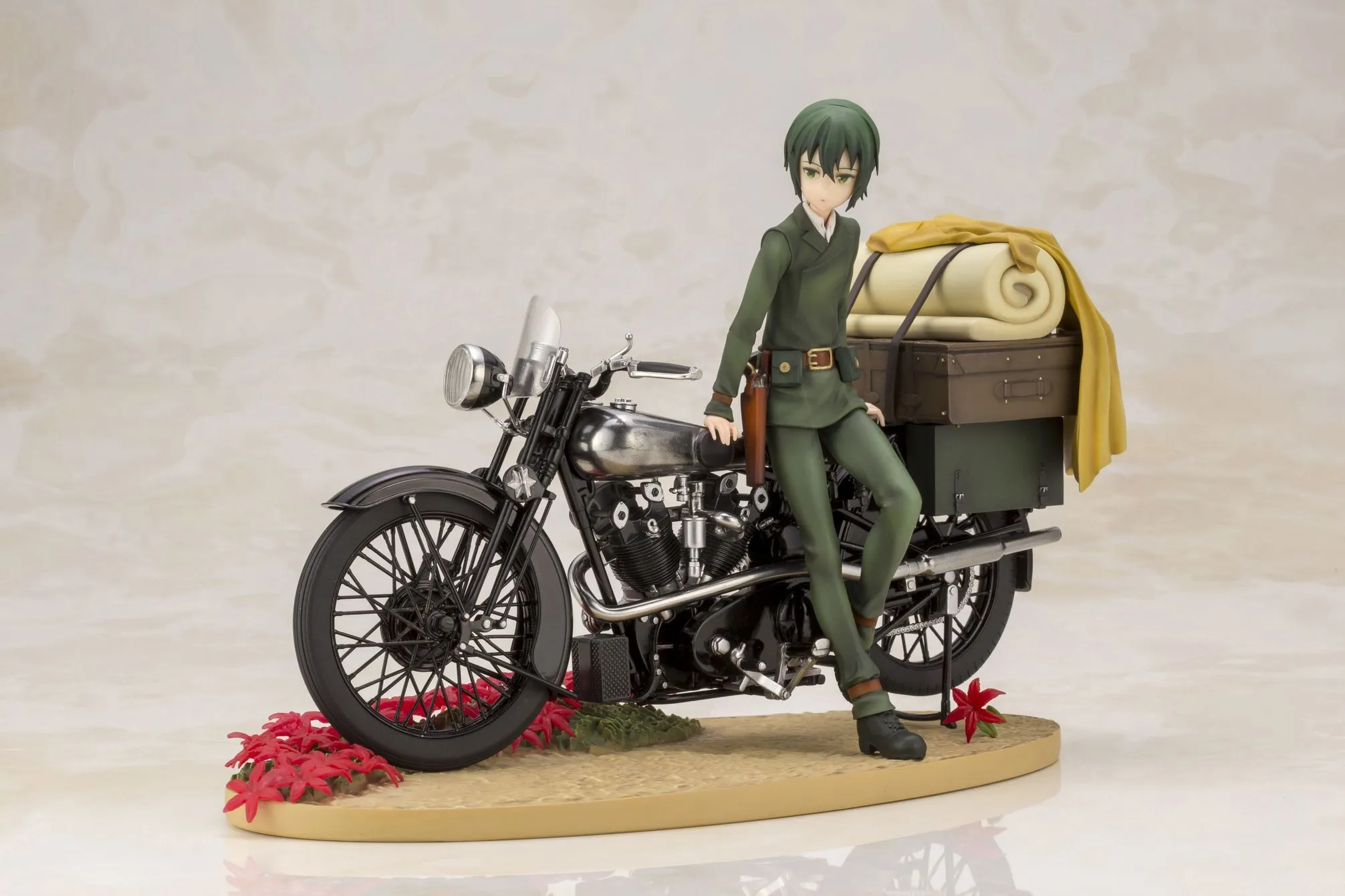 相棒のモトラド-エルメス-にたおやかに腰掛けるキノを立体化。