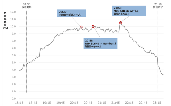 PerfumeやMrs. GREEN APPLE、RIP SLYMEら人気アーティストが登場した第1夜。多くの注目が集まる中、実際に視聴者の熱量が最も高まったのはどの瞬間だったのでしょうか。