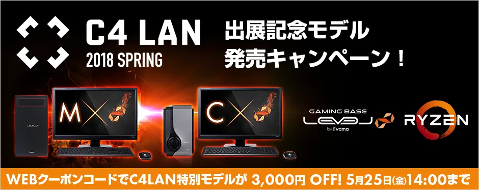 LEVEL∞(レベル インフィニティ) AMD(R) Ryzen(TM) 2000シリーズ搭載の 『C4 LAN 2018 SPRING出展記念モデル』 発売キャンペーンを実施