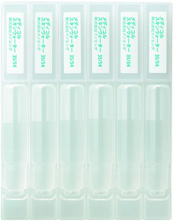 スキンウォーターには[35/54]のように数値が記されています。この数字は肌が健やかであるために必要な水分に含まれる栄養素の総成分数が54種類ある中で、化粧品に使えない成分などを 抜いた35成分を全て配合したという意味が込められています。