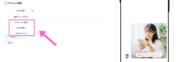 画像に「アクション設定」「URLを開く」「URLスキーム」を設定可能となりました。