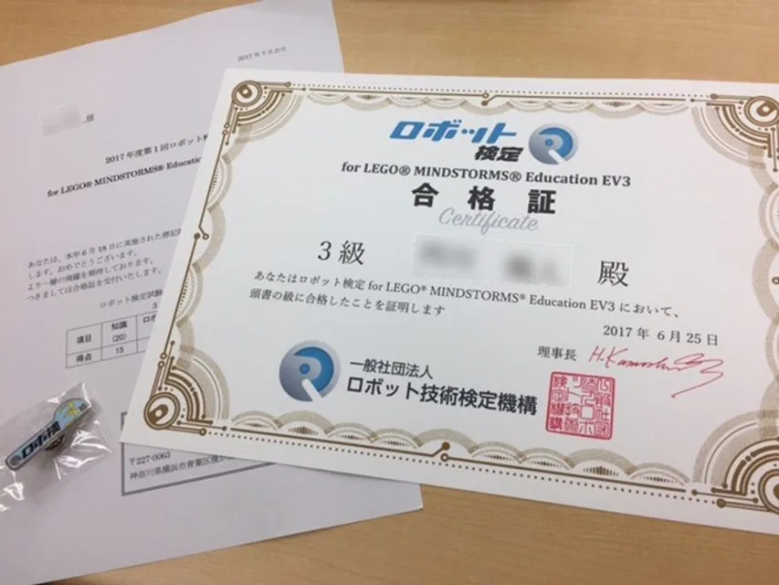 for Wedo2.0、EV3ともに、合格者には「認定証」と「認定バッジ」が授与されます。