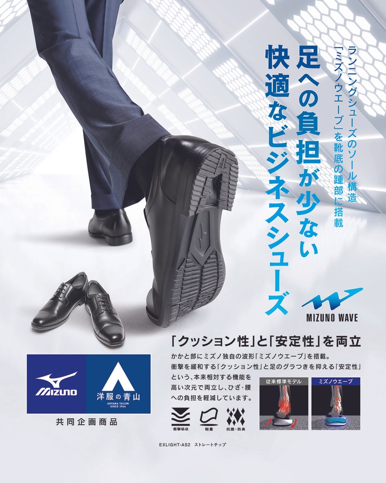 スポーツ機能を”ビジカジ”シューズに搭載~青山商事とミズノの共同企画シューズを「洋服の青山」で4月28日発売~