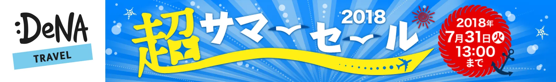 株式会社DeNAトラベル(本社:東京都新宿区、代表取締役社長:大見 周平、以下DeNAトラベル)は、オンライン総合旅行サービス「DeNAトラベル」(URL:http://www.skygate.co.jp/)において、本日2017 年5 月16 日(水)から7 月31 日(火)までの期間、「2018 超サマーセール」を開催します。