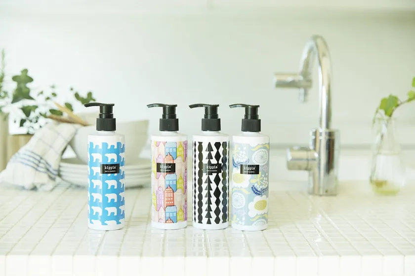 『Magica×kippisコラボセット』は、キッピスオリジナルデザインポンプボトル(空ボトル)4種類のいずれか1つと、『Magica 速乾+ クリアミントの香り』『Magica 速乾+ ナチュラルハーブの香り』のいずれかのつめかえ用大型サイズ(約5回分)2本を組合せたセット品です。