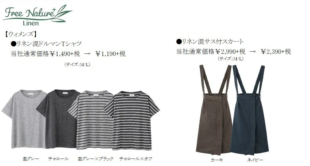 これからの暑い季節を爽やかに着こなせる「Free Nature LINEN」シリーズから、ウィメンズのドルマンTシャツをおすすめします。ブレンドしたリネンの肌触りが、爽やかな夏のデザインTシャツとして重宝します。メンズのリネン混シャツは、生地の風合いをいかしながら、シワになりにくい「イージーケア加工」を施しています。
