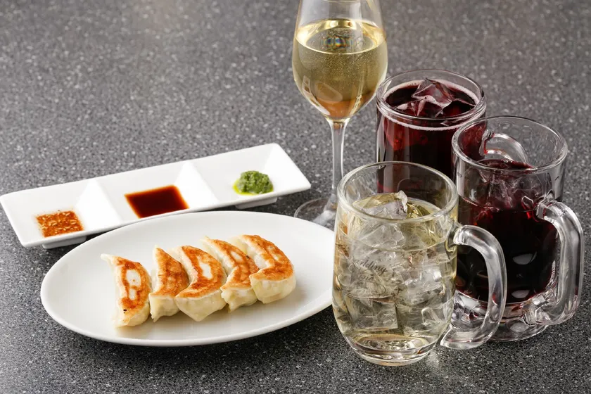 焼き餃子と赤ワイン…普通のタレで餃子を食べるとやはりビールなどには勝てない…。そこで自店では、赤ワインが合うように自家製のタレを作りおすすめしています。