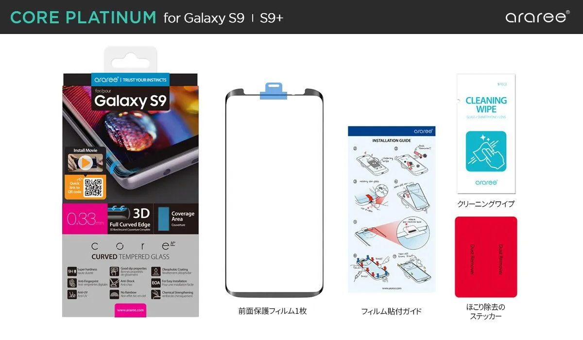モバイル周辺アクセサリー専門の株式会社ロア・インターナショナル(所在地:東京都新宿区、代表取締役社長:Ally Won)は、araree(アラリー)からGalaxy S9/S9+専用に強化ガラスを成形した保護フィルム「Core Platinum(コアプラチナム)」の発売を開始しました。