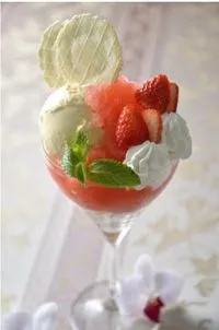 バニラアイス、クリームとともにパフェスタイルでご用意。