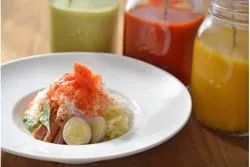 トマトコンソメスープのかき氷をトマトのジャムと一緒に、