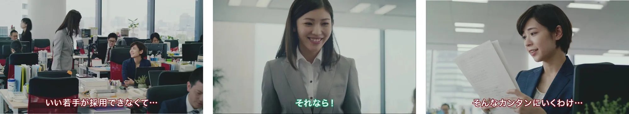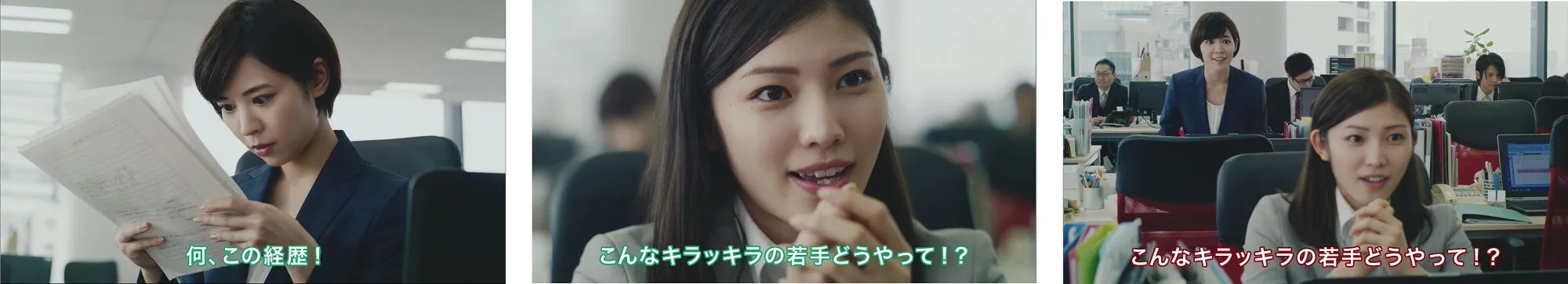 今回のCMは、「ビズリーチ」のCMで企業の採用担当者として登場した吉谷彩子さんに加え、新たに立石晴香さんが後輩として登場する、セカンドストーリーです。