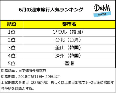 ~DeNAトラベルが6月の週末旅行人気旅行先ランキングを発表~