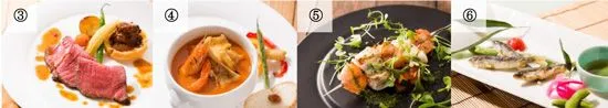 1.甘辛スイートチリソースのローストビーフや甘鯛の鱗焼きなど、“スパイシー&さっぱり”なメイン料理