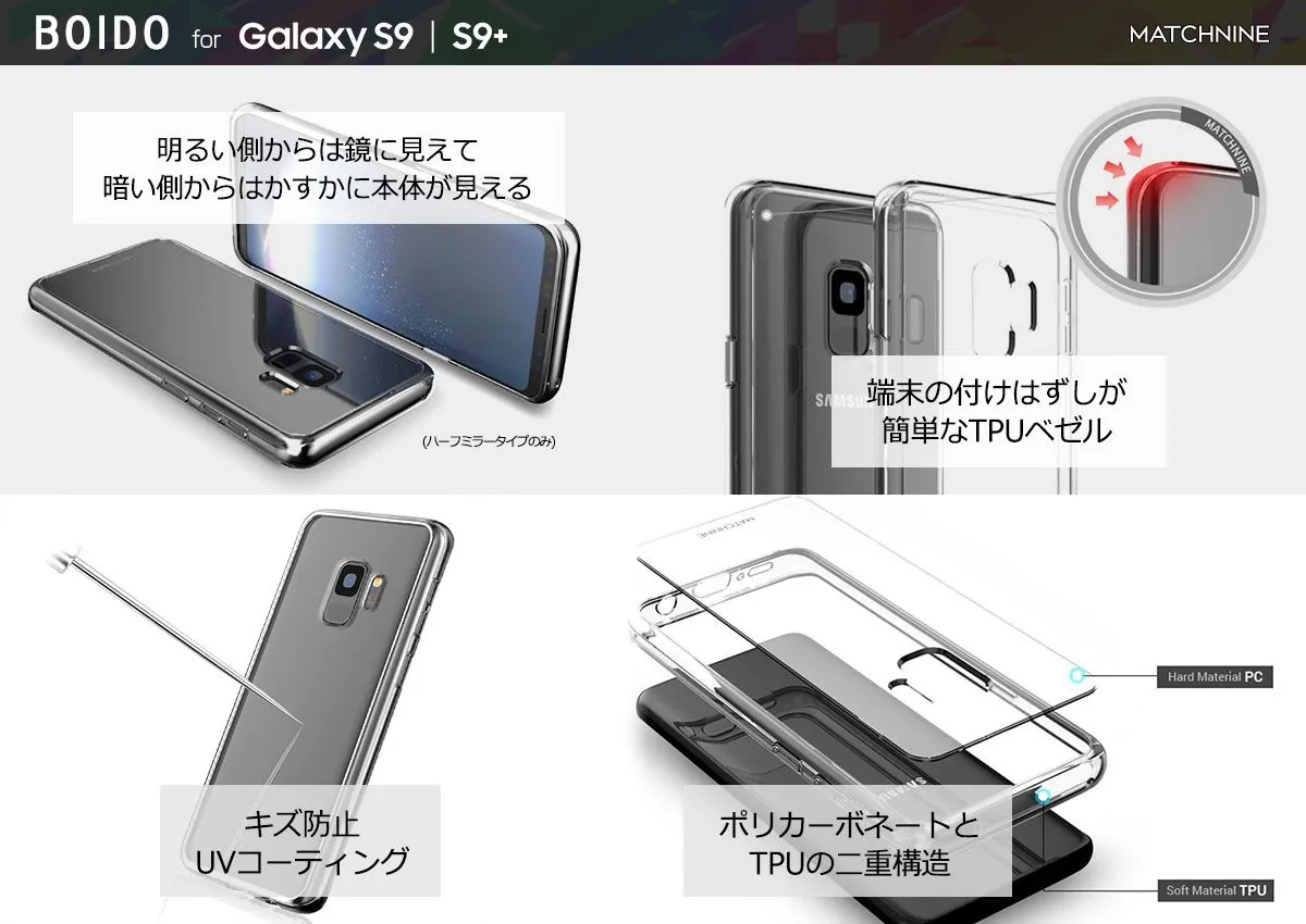モバイル周辺アクセサリー専門の株式会社ロア・インターナショナル(所在地:東京都新宿区、代表取締役社長:Ally Won)は、高品質なモバイルアクセサリーを提供するブランドMatchnine(マッチナイン)から、上質なクリアデザインと独自のハーフミラー加工がされた背面が特徴のGalaxy S9 / S9+ 専用ケース「BOIDO(ボイド)」を発売しました。