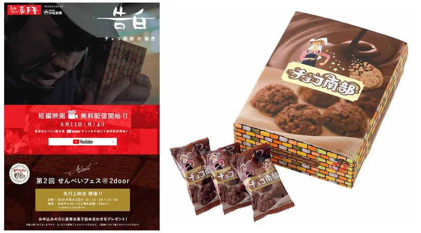 岩手県特産の南部せんべいを製造販売している老舗・株式会社小松製菓(南部せんべい乃巖手屋)は、今年が創業者・小松シキの生誕100周年、創業70周年であることを記念して、この度、自社で短編映画を製作しました。これまで門外不出とされてきた会社のトップシークレット「約1,000万円相当のチョコレート菓子を廃棄した大事件」を思い切って映画化することに。今だからこそ明かせる、人気商品「チョコ南部」を約3万箱も廃棄せざるをえなかった会社の歴史に残る秘密の実話を完全映画化。