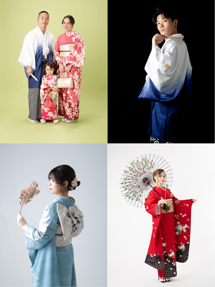 ・着物(振袖、訪問着、紋付、三歳被布、五歳男児袴、七歳四つ身、ジュニア振袖、ジュニア紋付)