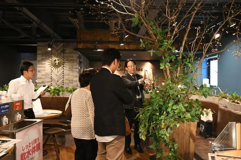 イベントブースに設置した軟水器装置で実際に手洗いをしてもらい、軟水の時と水道水の時を比較してもらいました。皆さん軟水で手がツルツルになることに驚かれていました。また、ウレタン実験では瞬間的に液体が膨らむ様子にお子様も親御さんも思わず笑顔が溢れていました。