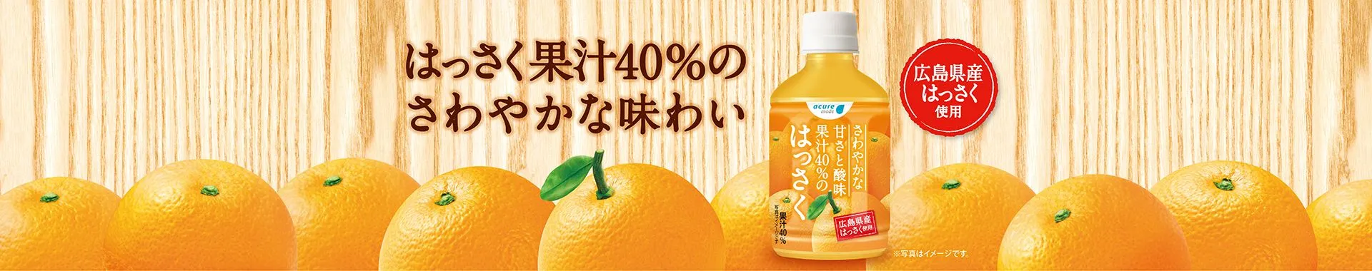 本商品は、広島県産はっさく果汁を40%使用することで、すっきり飲みやすい味わいにし、これからの暑い季節にゴクゴク飲める果汁飲料に仕上げました。