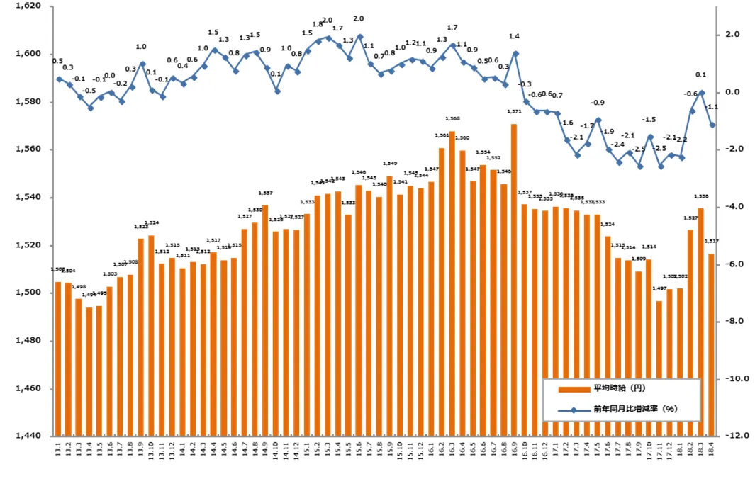 2018年4月度の派遣平均時給は1,517円。 クリエイティブ系・IT系・技術系が過去最高を記録。