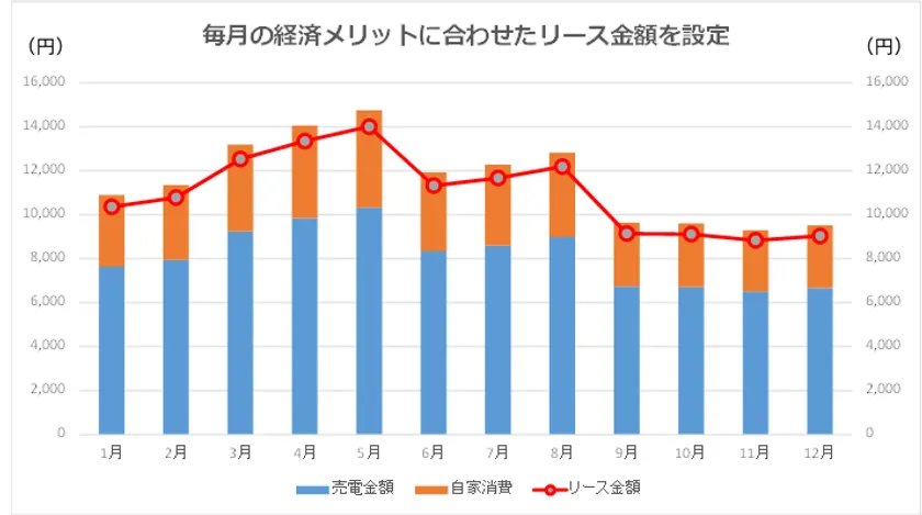 ・ 月々のリース金額を発電量のシミュレーション値に応じて変動させる
