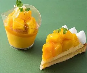 アーモンドタルトにカスタードクリームを塗りマンゴーの果肉を盛りつけました。