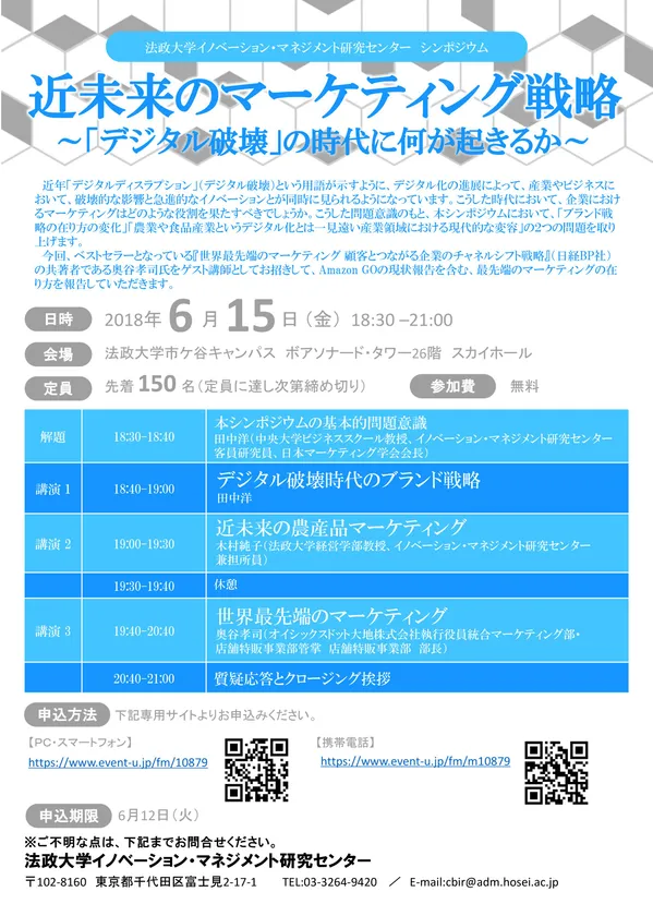 法政大学イノベーション・マネジメント研究センター シンポジウム「近未来のマーケティング戦略 ~『デジタル破壊』の時代に何が起きるか~」 6月15日(金)に市ケ谷キャンパスで開催