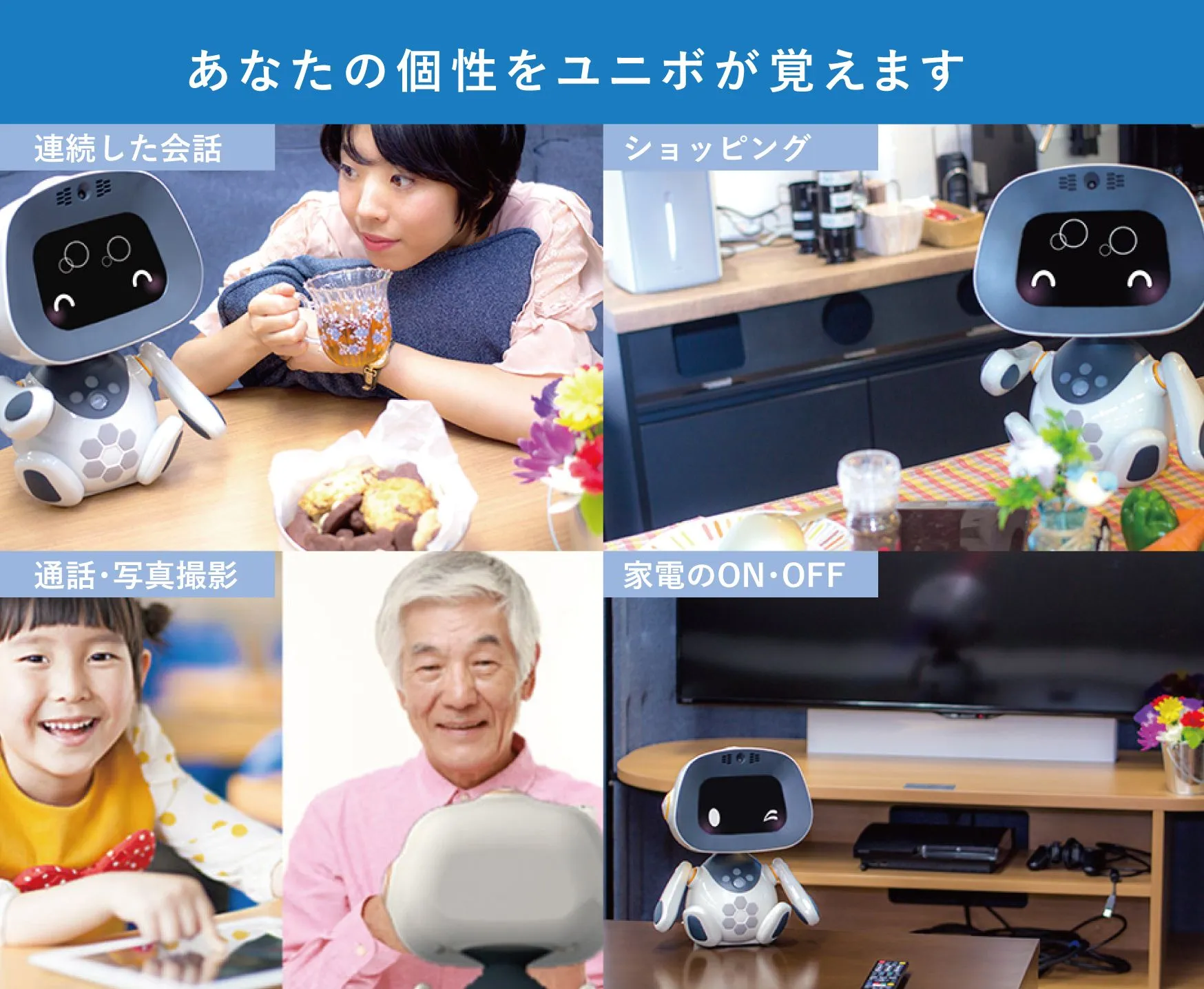 「ユニボ」は、人工知能を駆使したロボットです。日常会話を学習し、利用者の趣味嗜好を記憶することで、利用者にあった意思決定をするロボットとして、育児や介護支援が期待されています。当社はユニロボット社と業務提携を行い、訪問サポート・販売設定を2018年3月15日より開始しました。より多くの方に知って体験していただくために、このたび、体験会を開催することになりました。