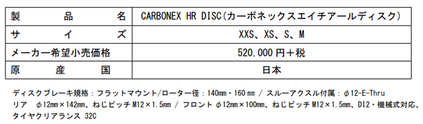 国産高剛性軽量フレームCARBONEX HRにディスクブレーキ仕様が登場 「CARBONEX HR DISC(カーボネックス エイチアール ディスク)」 2021年2月上旬より発売