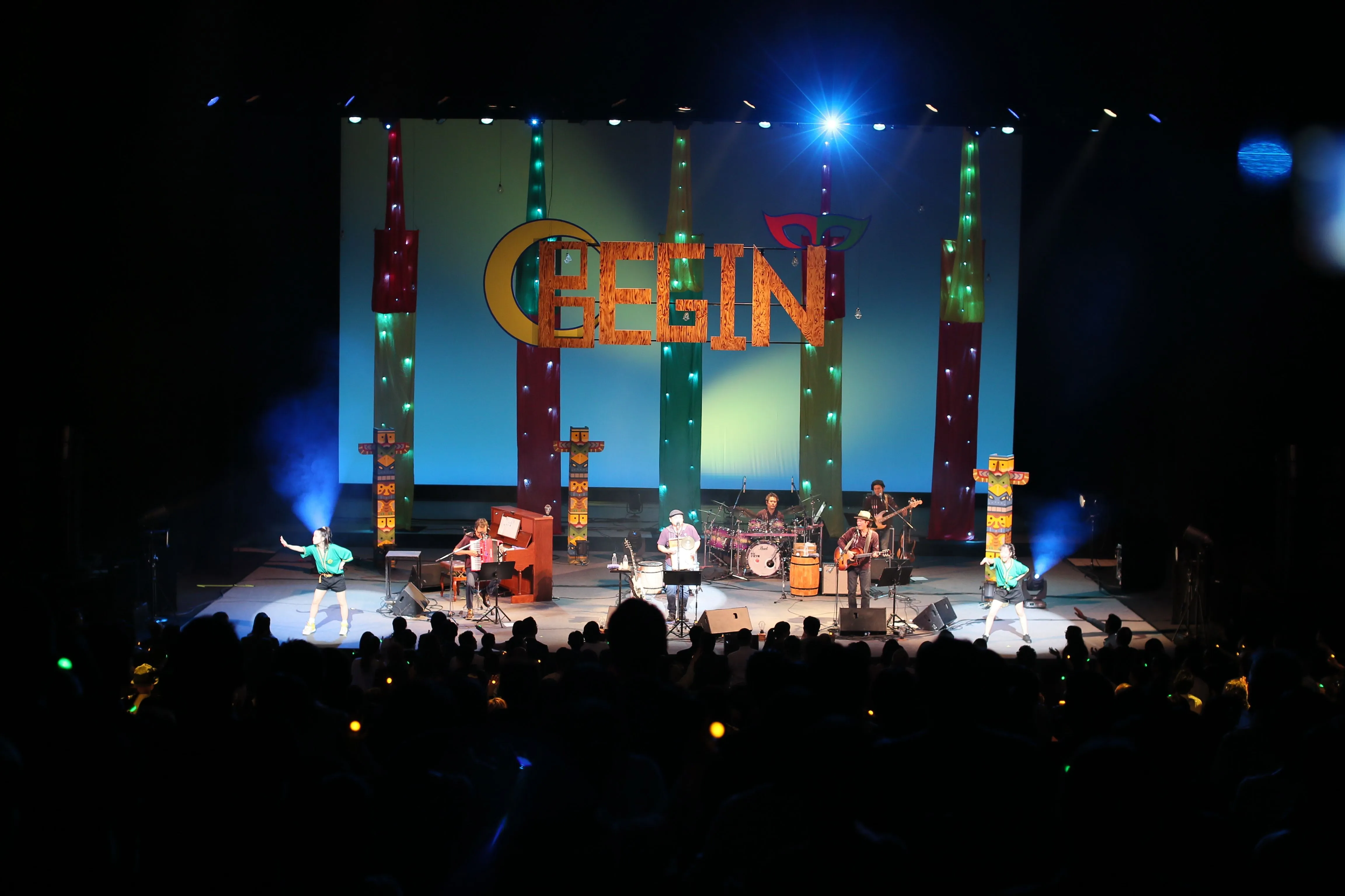今回のスペシャルライブでは、会場には未来の花嫁様約200名を含め約1700名のお客様にお越しいただきました。ライブの幕開けは、BEGINのライブでは8年ぶりの披露となる「ぼくらのこの素晴らしき世界」をBGMに、ウエディングドレスを身にまとったモデル達が客席に登場しました。ランウェイに見立てた通路を優雅に歩き、その姿に会場が息を呑むと、ステージにはBEGINのメンバーが登場してパフォーマンスがスタート。BEGINが今回のために用意してくれた一夜限りのパフォーマンスに、会場は一体となって盛り上がりました。
