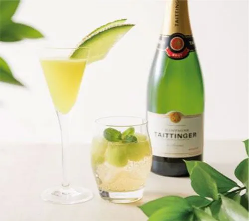 ほろ甘いメロンリキュール、シャンパンを合わせ、