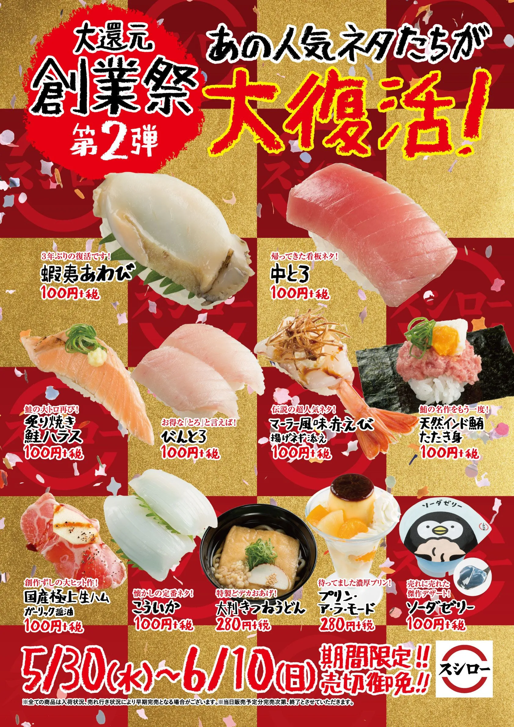 スシロー創業祭・第2弾! あの人気のネタたちがcoming back 『復刻祭』を開催!!