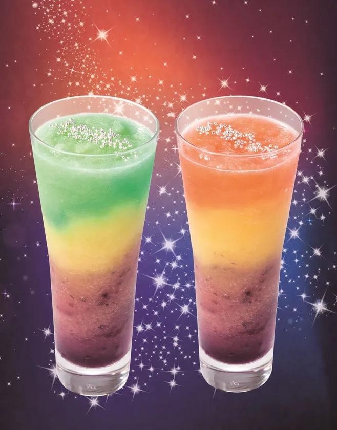 そして、『ORIHIMEグラニータ』は“ざくろテイストのシロップ”を、『HIKOBOSHIグラニータ』は“オレンジテイストのシロップ”を味わいのアクセントに加えてミキシングすることで、七夕の夜空のような印象的なグラデーションに仕上げるとともに、銀色のアラザンを天の川に見立ててトッピングすることで、トータルで七夕の世界感を演出したフォトジェニックなグラニータが出来上がりました。