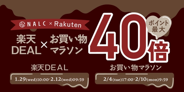 シリーズ累計販売個数320,000個突破※1のジェンダーレスコスメブランド「NALC(ナルク)」(株式会社G.Oホールディングス :大阪府大阪市)は、1月29日〜 2月12日までの期間中、【楽天DEAL×お買い物マラソン】にて人気アイテム各種を《ポイント最大40倍》で販売いたします。