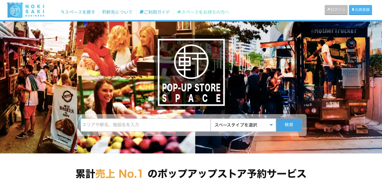 軒先ビジネスは、誰でも簡単に1日からお店やイベントを開けるポップアップスペースを探せるスペースシェアサービスです。初期費用やスペース掲載料は一切不要。また、スペース利用者のPL保険や営業許可証の取得状況も確認済みで、一日単位の損害保険も適用されるため、安心してスペースを貸すことができます。