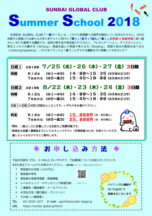 【小・中・高生向け 英語4技能 Summer School】