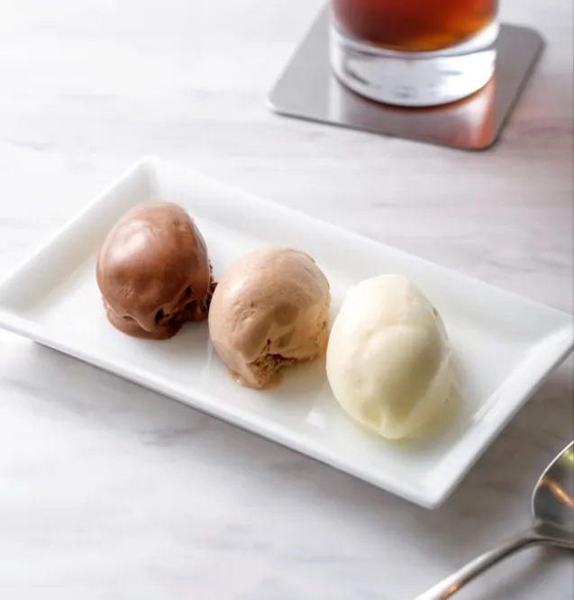 ベルギー直輸入のグラス&ソルベに3種類の新フレーバーが登場。ドゥバイヨルがオリジナルでブレンドしたショコラをソルベ(シャーベット)に仕立てました。カカオの苦みとコクのバランスがとれた「ノワール」、マイルドでなめらかな口溶けの「レ」、クリーミーでほんのり甘さを感じる「ブラン」。芳醇なカカオの味わいに口溶けの良さが相まって絶妙なハーモニーを生み出します。