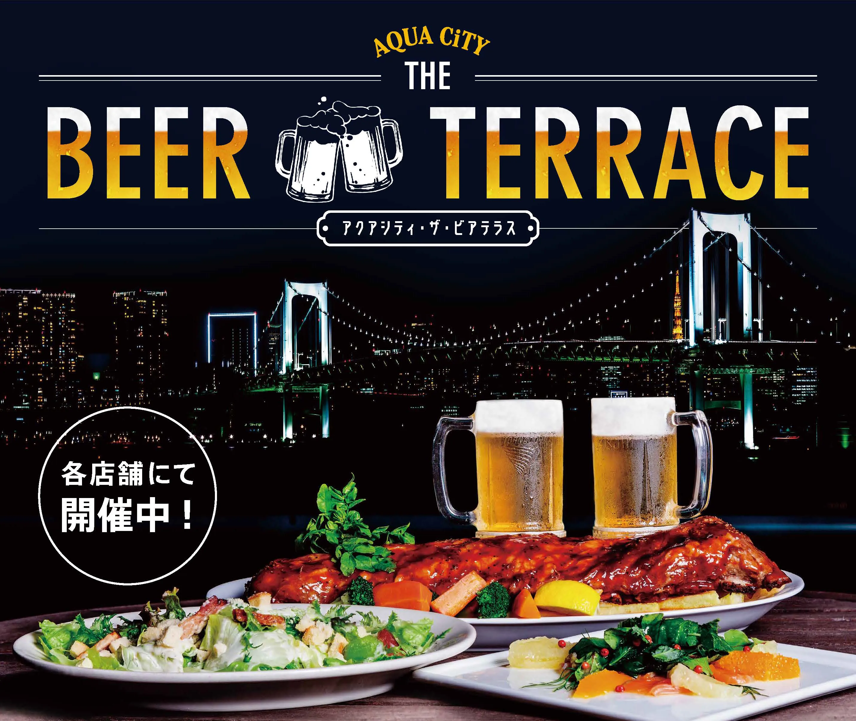 さらに、6月1日(金)~10月上旬の期間中には、アクアシティお台場内飲食店が計15店舗参加し、お台場エリア最大級の総テラス席数を誇る「アクアシティ・ザ・ビアテラス」を開催します。ベイサイドの夜景と共に、各店にて美味しいドリンクと、オリジナルメニューやコースをお楽しみいただけます。