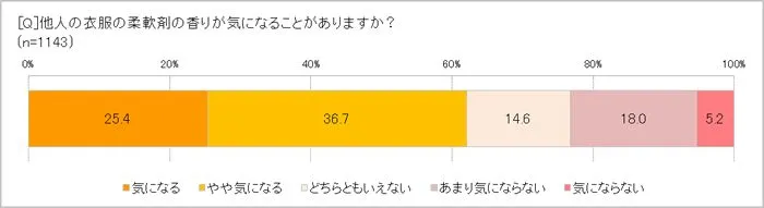 「他人の柔軟剤の香りが気になる」人が62.1%、「香りが苦手」な人も33.9%