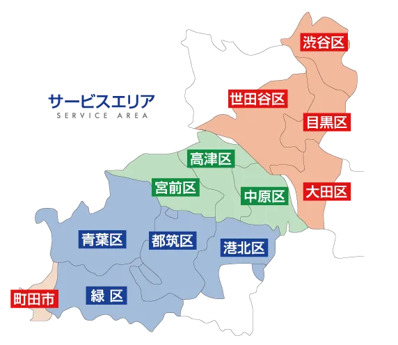 神奈川県:横浜市 (青葉区、港北区、都筑区、緑区)川崎市 (宮前区、高津区、中原区)