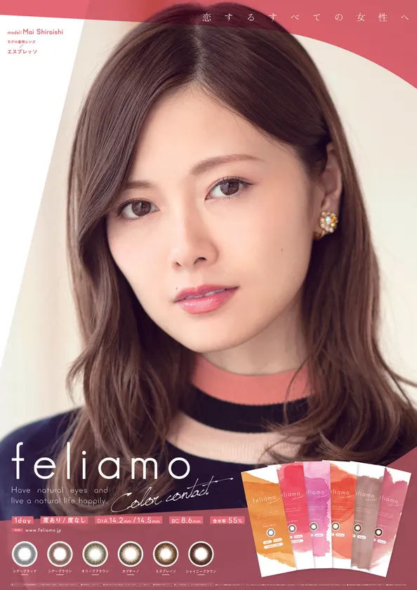白石麻衣の瞳が手に入る!?新カラコン『feliamo』6/1発売 ナチュラルになじんで大きく潤った瞳にできる全6カラー