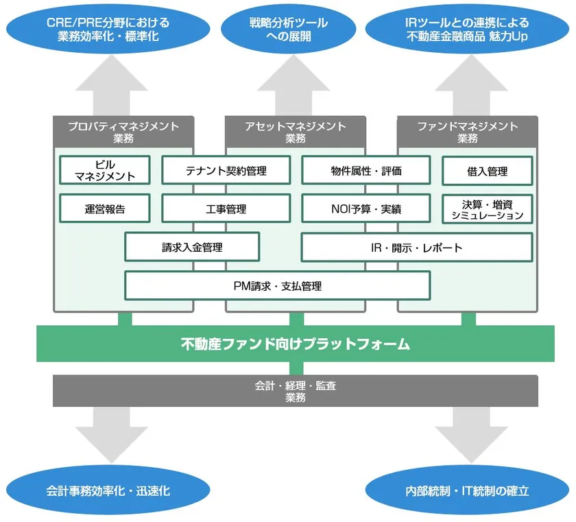 また不動産ファンド業界のみならず、既に実績のあるCRE(Corporate Real Estate:企業不動産)のシステム化ニーズにも対応し、今後JRTは更に進化したプラットフォームサービスの提供を実現して参ります。