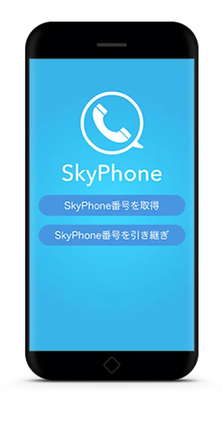 SkyPhoneはユーザー登録など面倒な設定は要りません。ダウンロードしたら「SkyPhone番号の取得」をタップするだけでご利用が可能です。操作画面もシンプルなので、スマホ初心者にもわかりやすく、お子様やお年寄りでも簡単にご利用いただけます。