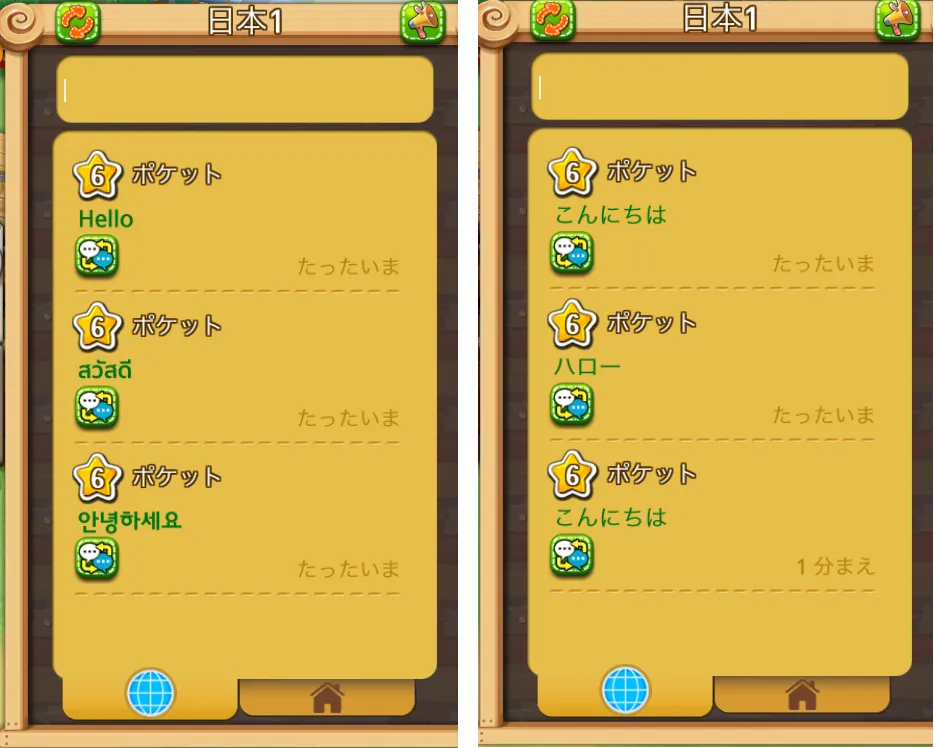 トークと手紙で、日本語以外の言語が翻訳できるようになりました。文章左下に表示される自動翻訳ボタンをタップすると、外国のユーザーとおしゃべりを楽しむことができます。