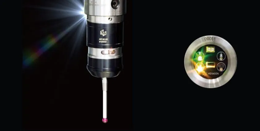 三次元測定機(CMM)で寸法計測(精密測定)に用いる機器。ワーク(対象部品)に接触させその数値を出力するスイッチのようなもので、精確かつ高精度の幾何形状データを生成します。製造工程内を通してこのデータを取得し活用することは、ワークを規格内に確実に収めるために役立ちます。