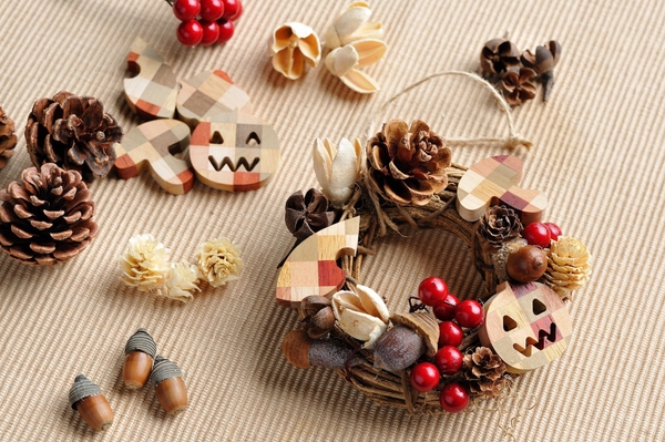 寄木のリース作り