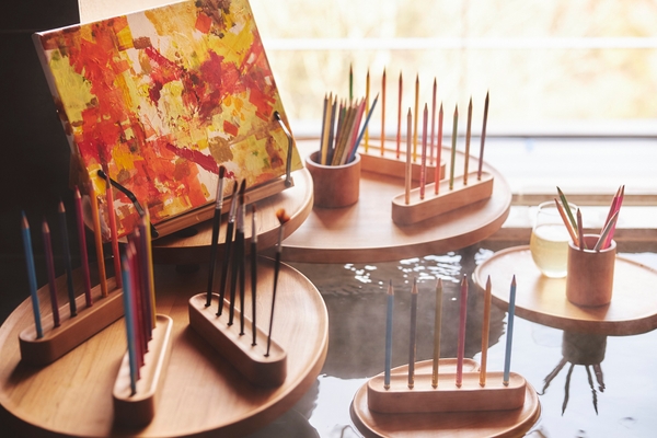 足湯をしながら抽象画に挑戦したり、客室の露天風呂に浸かり、リラックスした状態でスケッチを楽しむ「湯ったりアート滞在」プランが登場します。スタッフのガイドやアーティストによるアドバイスがあり、アートに馴染みのない人でも簡単に体験することができる 1 泊 2 日のプランです。