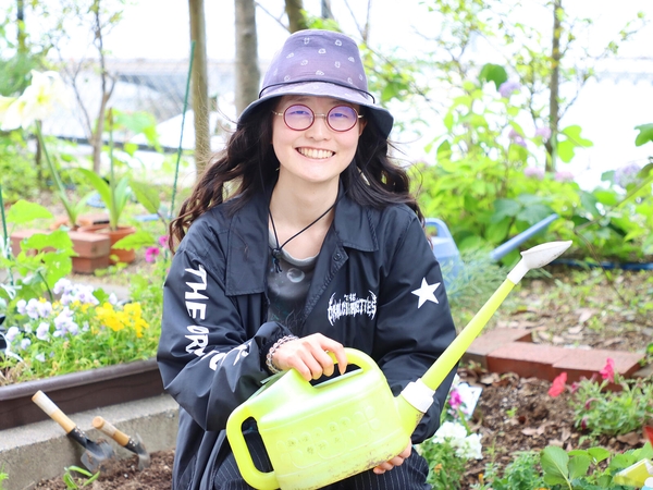 中学校では吹奏楽部、高校では演劇部に所属するなど、園芸以外にも興味は多彩。所属する趣味の園芸愛好会では、自然が好きで仲間とゆるく集まれる場所を求める人を募集中。