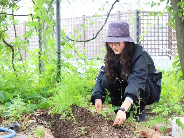 食に関心があったので農学部に入り、授業で植物について学んだりサークル活動をしたりするうちに園芸の面白さにハマりました。今は家の畑や趣味の園芸愛好会というサークルで、いろいろな種類の野菜や花を育てています。