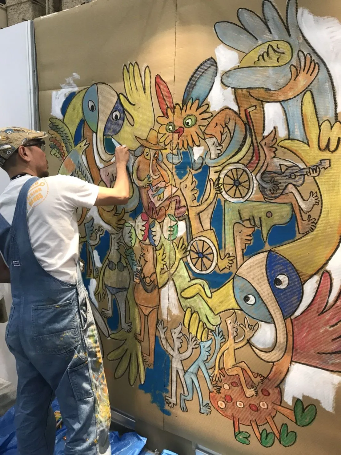 コミュニケーションとしてのアート表現や手話をテーマにした[HAND TALK]をコンセプトに、絵本や絵画作品の制作の他、巨大なキャンバスにみんなで一緒にクレヨンで絵を描く「らくがきワークショップ」やミュージシャンとのライブペインティングを行っている。