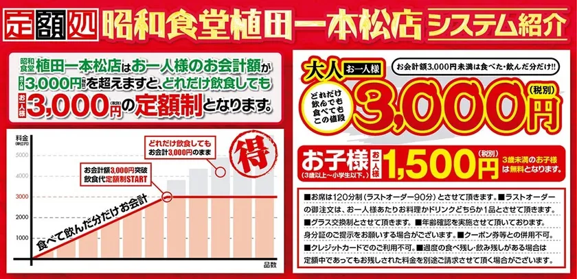 定額処 昭和食堂 植田一本松店 システム紹介